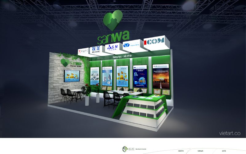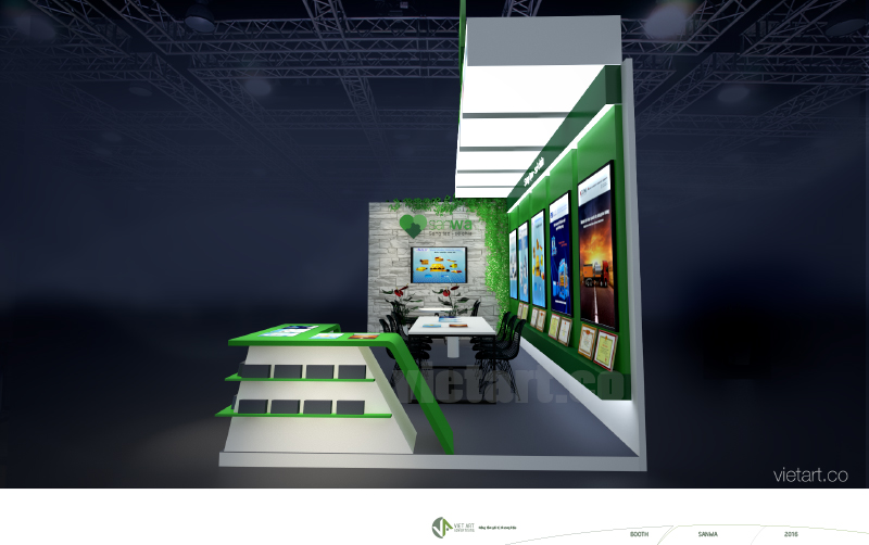 Booth is a space for advertising - promotion of a product . Booth ads without certain size , depending on the size and space marketing campaign to put Booth that we have different size nhau.Thiet booth design is a space designed for advertising , promotions a product , often takes place in supermarkets , commercial centers , fairs etc ...At Viet Art , we are proud with over 8 years experience in the field of construction design of advertising , POSM , product display shelving cabinets ... construction advertising items indoors and outdoors . Meet the demand for innovative quality most discerning customers with the most beautiful pavilions form . VIET ART advertising companies confident that will be the partner unit design and construction of exhibition booths reliable for any company, any business. With a design team for many years of experience in designing, building 3D graphics for exhibition booths and outsourcing skilled labor teams, we are committed to offering the best solutions for client companies. With the implementation process from design to construction has been carefully planned, so time is very fast implementation, ensuring instant. In just 7 days of preparation, the company completed VIET ART will work, while ensuring the quality and quantity that the customer has previously browsing. It is time that the company is not design ads can also perform. https://thietkegianhanghoicho.com/san-pham/