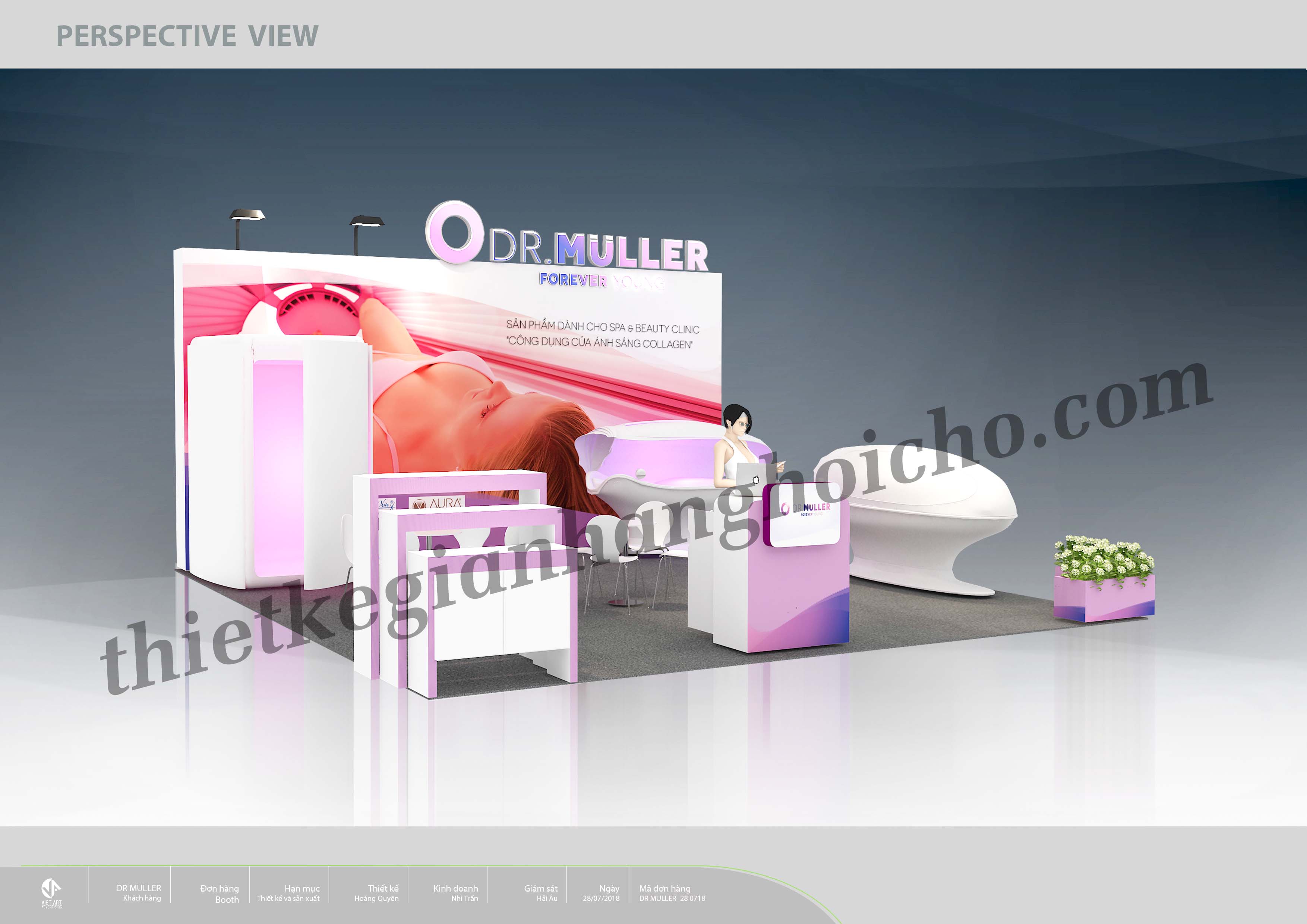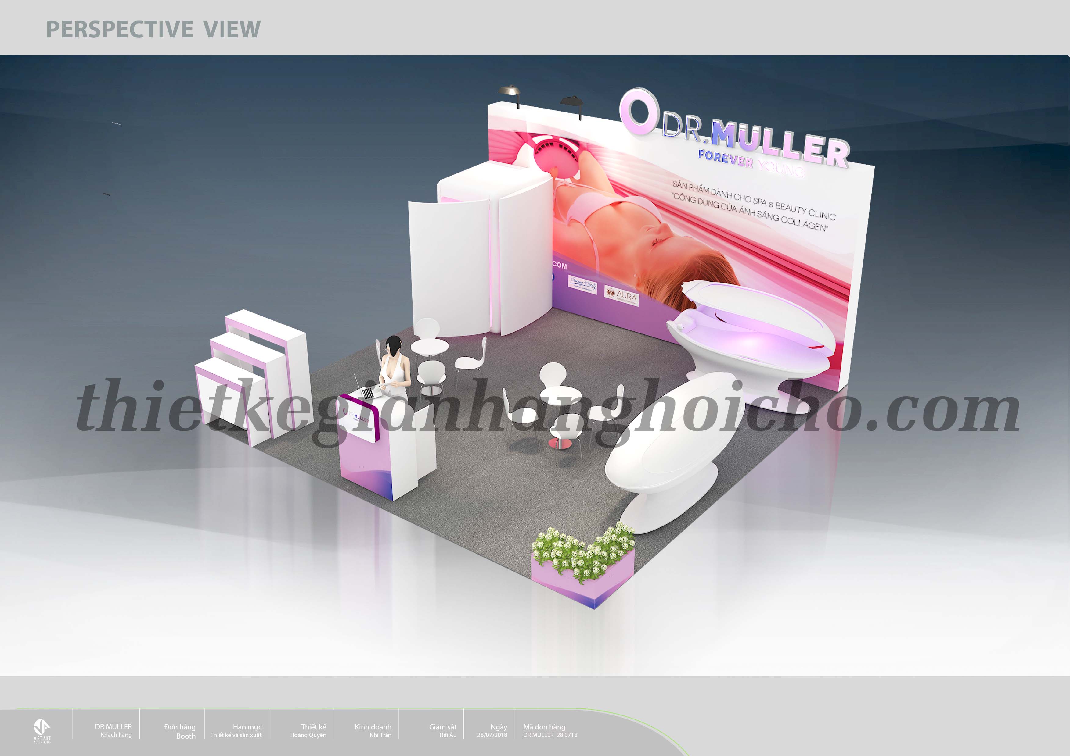 Với tiêu chí có một gian hàng không gian mở. Một gian hàng giản thể nhưng thể hiện nổi bật được màu sắc thương hiệu và logo của mình. Bên canh đó, gian hàng phải được thi công trong thời gian ngắn và tiết kiệm được chi phí. Do đó, Dr. Muller đã quyết định lựa chọn VietArt, một đơn vị chuyên thiết kế thi công gian hàng, đơn vị luôn tìm ra giải pháp phù hợp dành cho tiêu chí của khách hàng. Sau khi kết thúc triển lãm, Dr. Muller có phản hồi rất ưng ý về gian hàng. Booth có chi phí hợp lí mà đáp ứng được hết tiêu chi mà Dr. Muller đã đặt ra ban đầu.