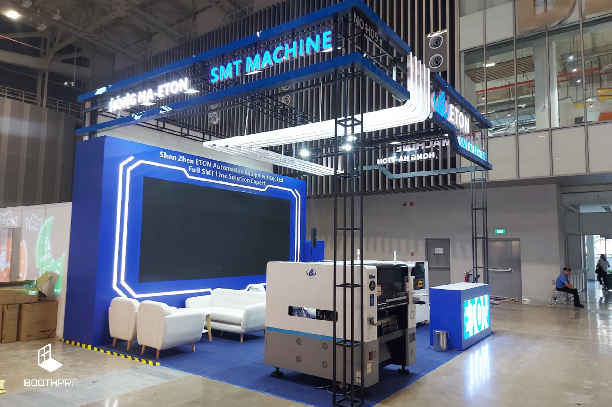 - Phong cách hiện đại và đẳng cấp: Gian hàng Eton SMT Machine được thiết kế với phong cách hiện đại và đẳng cấp, thể hiện sự chuyên nghiệp và uy tín của thương hiệu.