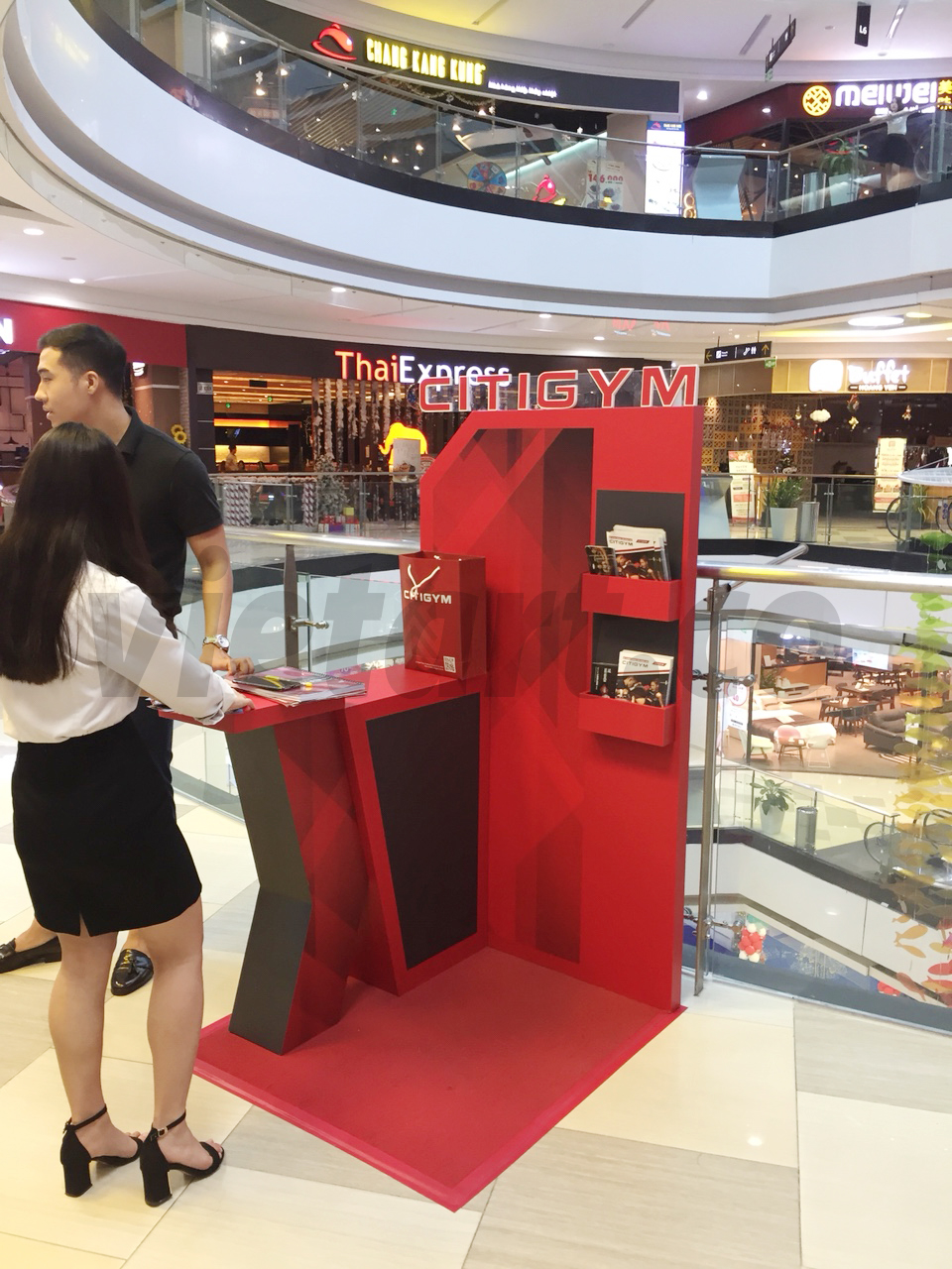 Để hoàn thành được sứ mệnh của mình. Và cũng để khách hàng có thể thuận tiện trong việc đăng kí và được tư vấn miễn phí. Citigym liên tục đặt các mini booth ở các trung tâm thương mại. Citigym đã liên hệ VietArt để thiết kế, sản xuất và thi công các booth này.